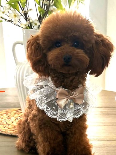 Meet Josie, one of our future moms! She’s AKC registered and carries a stunning deep red coat. This little sweetheart is full of personality and charm, and we’re so excited to have her as part of our breeding program. Josie is expected to be around 5 lbs when fully grown.